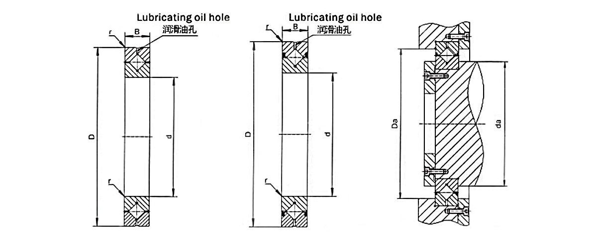 1. Alta rigidez y alta precisión: Los rodillos cilíndricos dispuestos ortogonalmente entre los anillos interior y exterior mejoran la rigidez y la precisión de funcionamiento.