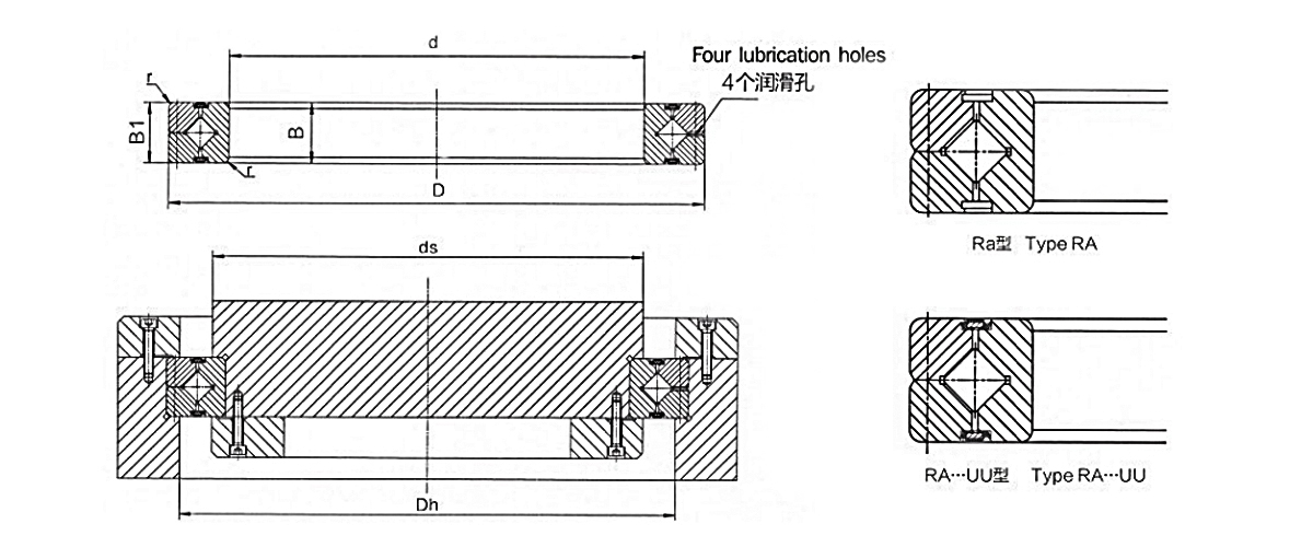 Los rodamientos de rodillos cruzados de perfil delgado de la serie RA presentan dimensiones de ancho y diámetro exterior más pequeñas, lo que los hace adecuados para aplicaciones con espacio limitado. Esta serie está disponible en tipos de jaula, separador y complemento completo para adaptarse a diversas necesidades.