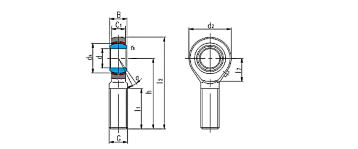 El cuerpo del cojinete del extremo de la varilla está hecho de acero al carbono con una superficie galvanizada y la superficie deslizante tiene incrustaciones de juntas de bronce. El anillo interior está fabricado en acero para rodamientos, endurecido y cromado esféricamente duro. A excepción de diámetros de orificio inferiores a 6,35 mm, todos los demás se pueden lubricar mediante un vaso de aceite.