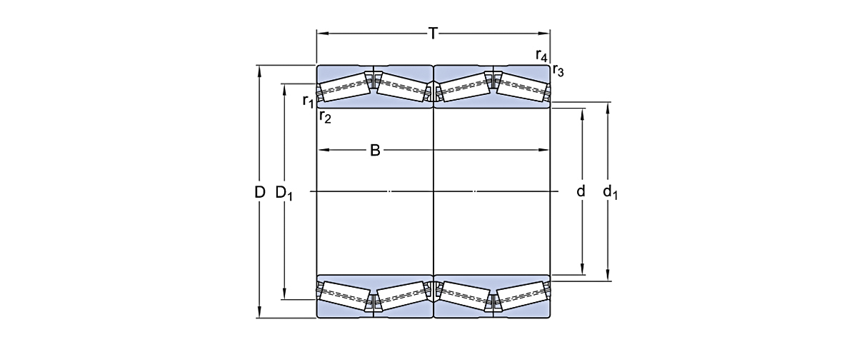 Los rodamientos de rodillos cónicos de cuatro filas son un diseño especializado que se utiliza principalmente para acomodar cargas radiales extremadamente altas y cargas axiales parciales. Se emplean comúnmente en maquinaria pesada como laminadores (p. ej., laminadores en caliente de cuatro alturas, laminadores en frío) y molinos florecientes. Su diseño presenta rodillos dispuestos en cuatro anillos exteriores cónicos, lo que da como resultado una alta capacidad de carga y una vida útil prolongada. Además, su espacio libre se puede preajustar modificando los espaciadores (o cuñas) para adaptarlos a diversos requisitos operativos.